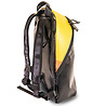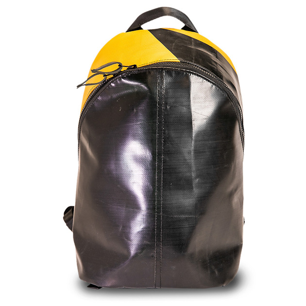 En ryggsäck med en stor ficka på insidan och en mindre med en dragkedja Handgjord av kapellväv från lastbilar som rullat på Europas vägar. Ett material som är tvättat och rengjort men som fortfarande har kvar en del av sin använda karaktär. Bilbältesmaterial i axelremmarna ger en nästan outslitlig egenskap.